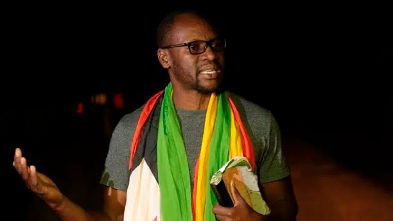 Wrapped in the national flag and carrying a Bible, he told reporters that President Emmerson Mnangagwa’s government is behaving like that of former leader Robert Mugabe.