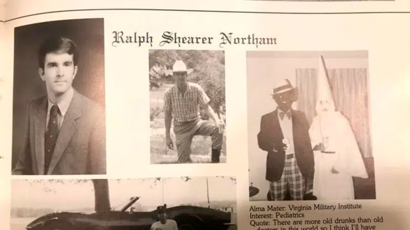 RICHMOND, Va. — Virginia Gov. Ralph Northam’s page in his 1984 medical school yearbook contains a photo of a person in blackface and another wearing a Ku Klux Klan hood next to different pictures of the governor.