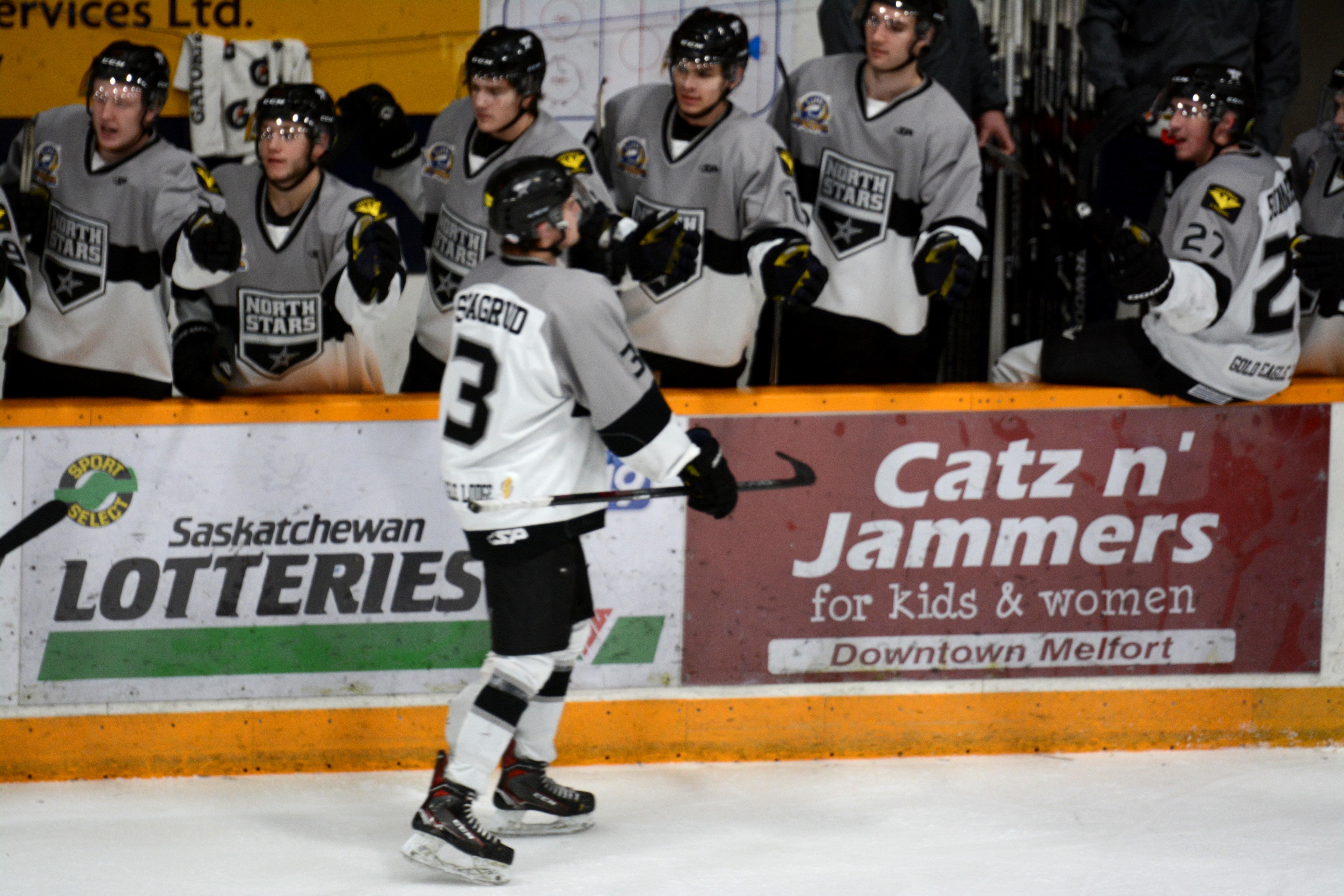 North Stars’ centerman, Brett Gammer, pictured here, scored a gorgeous goal for the team Sunday night, his first career SJHL postseason goal. (Martin Martinson/battlefordsNOW Staff)