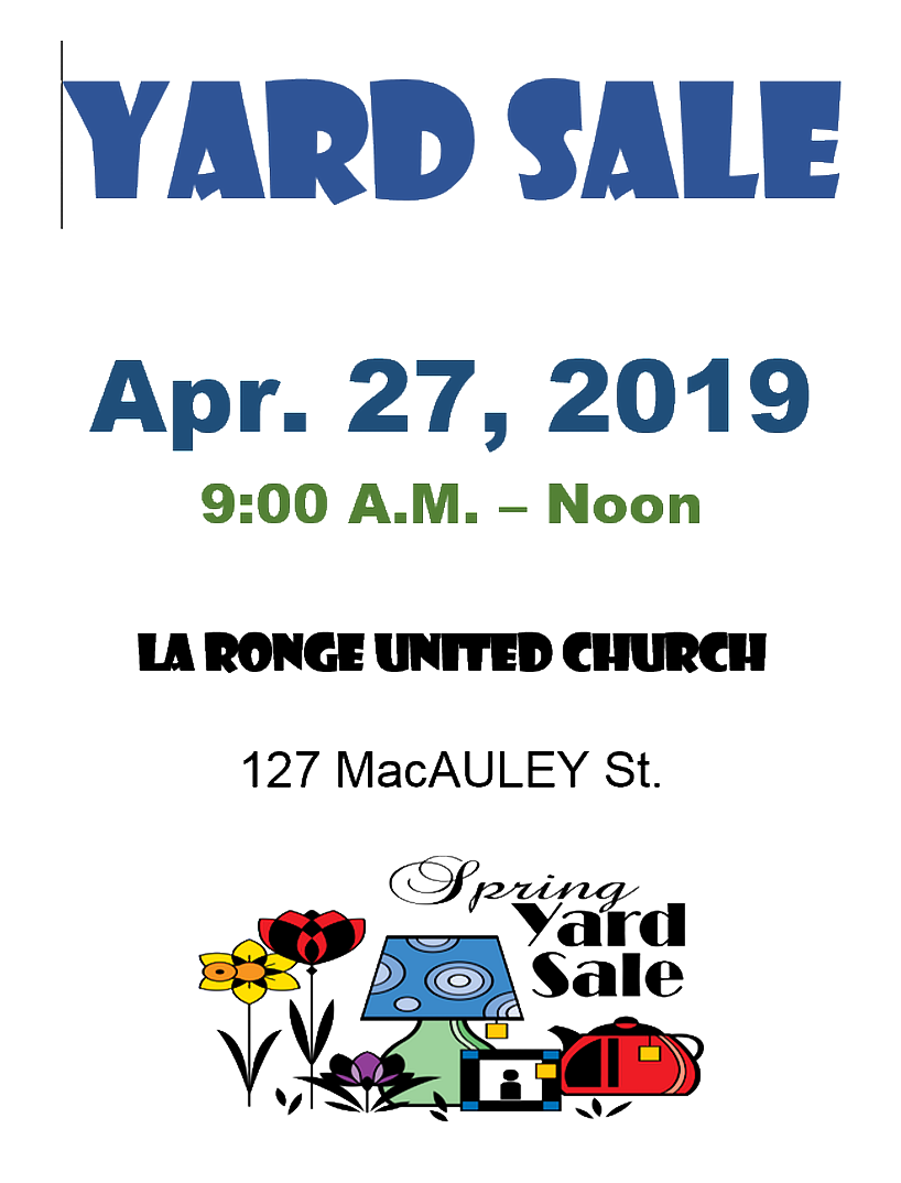 The La Ronge United Church is hosting a Garage Sale on April 27 from 9:00 a.m. until noon.
