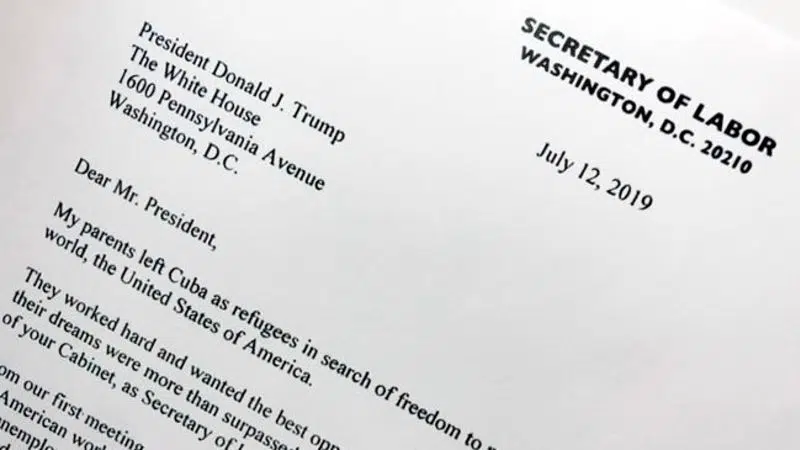 WASHINGTON — Adding to the lengthy list of departures from President Donald Trump’s Cabinet, Labor Secretary Alexander Acosta said Friday he’s stepping down amid the tumult over his handling of a 2008 secret plea deal with wealthy financier Jeffrey Epstein, who is accused of sexually abusing underage girls.