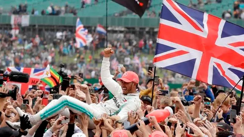 Hours before England’s cricketers lifted the World Cup for the first time in London — sealed on a tiebreaker at Lord’s — Hamilton was part of far more familiar scenes in central England in front of a record Silverstone race crowd of 141,000.