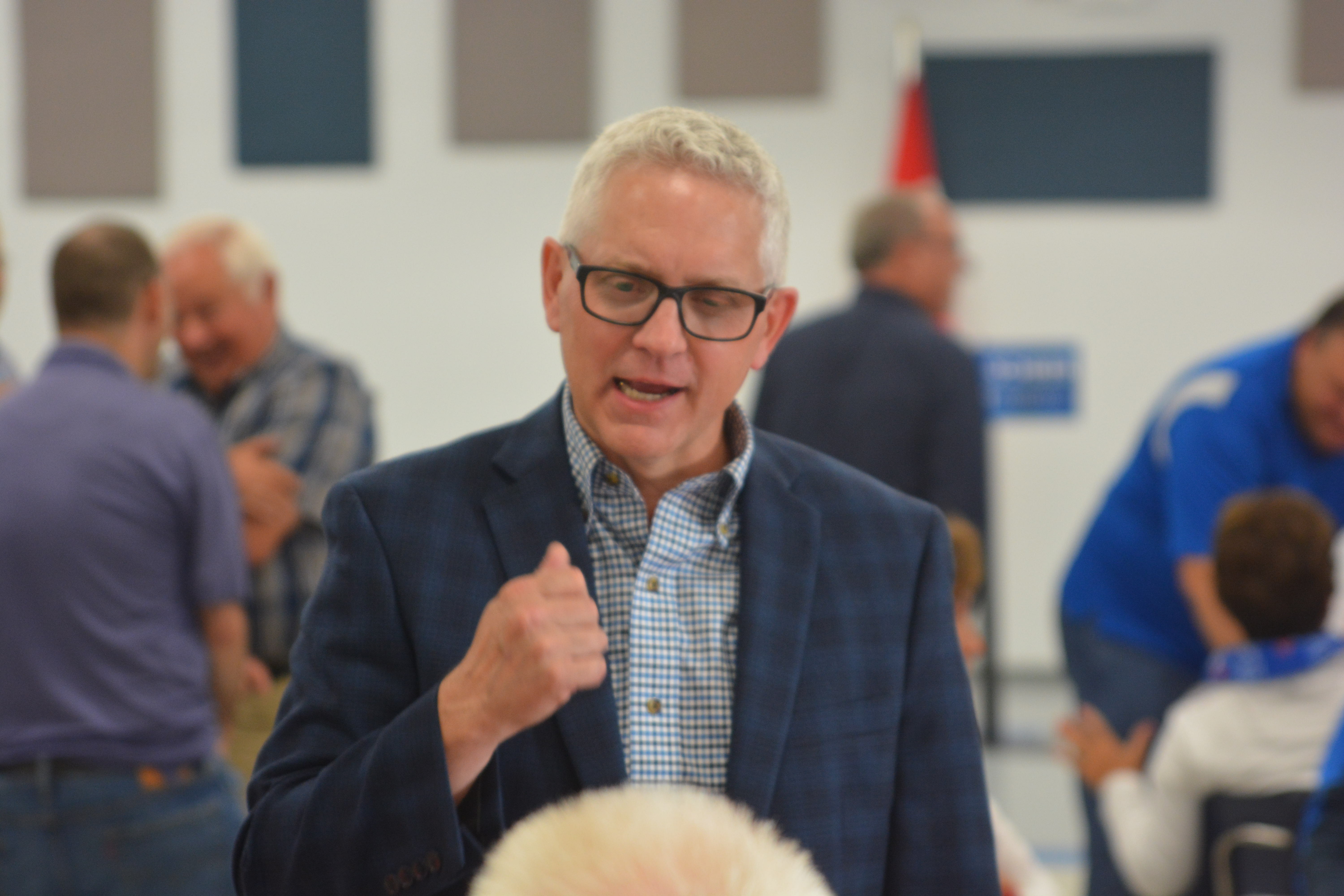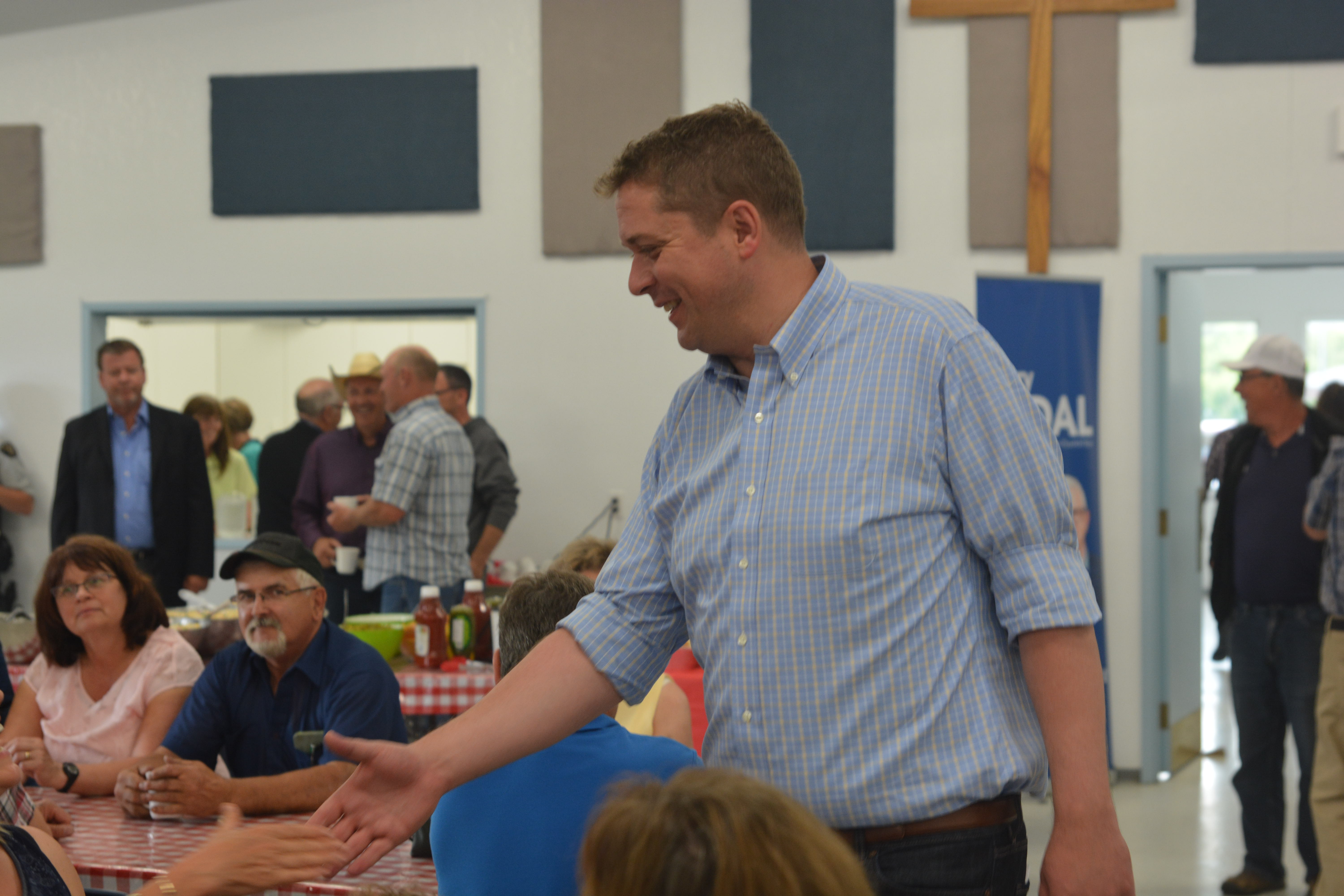 Andrew Scheer shook hands and spoke with people at the Catholic Church Hall before giving a speech. (Nikita Ganovicheff/meadowlakeNOW Staff)