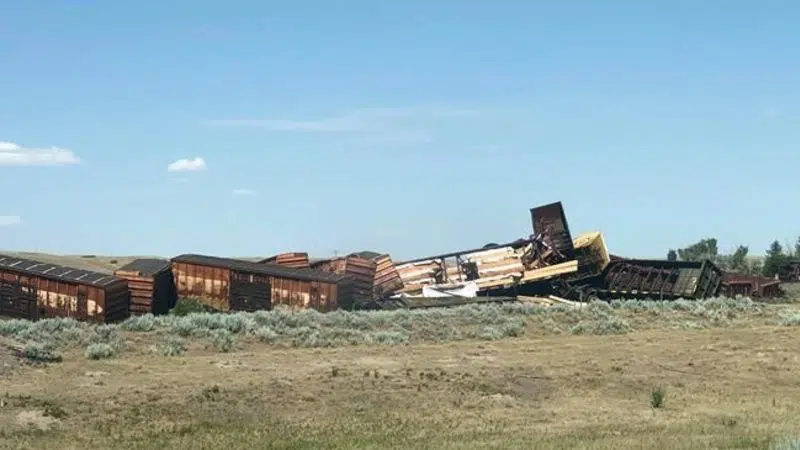 Witness Trehia Stevenson said the derailment included about a dozen rail cars, which she said did not appear to be tanker cars. She said it was right on the western edge of Irvine, less than a kilometre from homes.