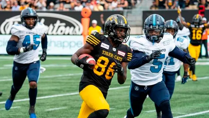 The five-foot-nine, 197-pound sophomore receiver had 11 catches for 167 yards and two touchdowns while rushing five times for 23 yards in Hamilton’s 38-27 home win over Toronto on Monday afternoon. That’s after Addison recorded six receptions for 107 yards and three TDs in the Tiger-Cats 64-14 road victory over the Argos on June 22.