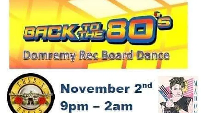 The Domremy Recreation Board is hosting a Back to the 80s dance November 2nd.