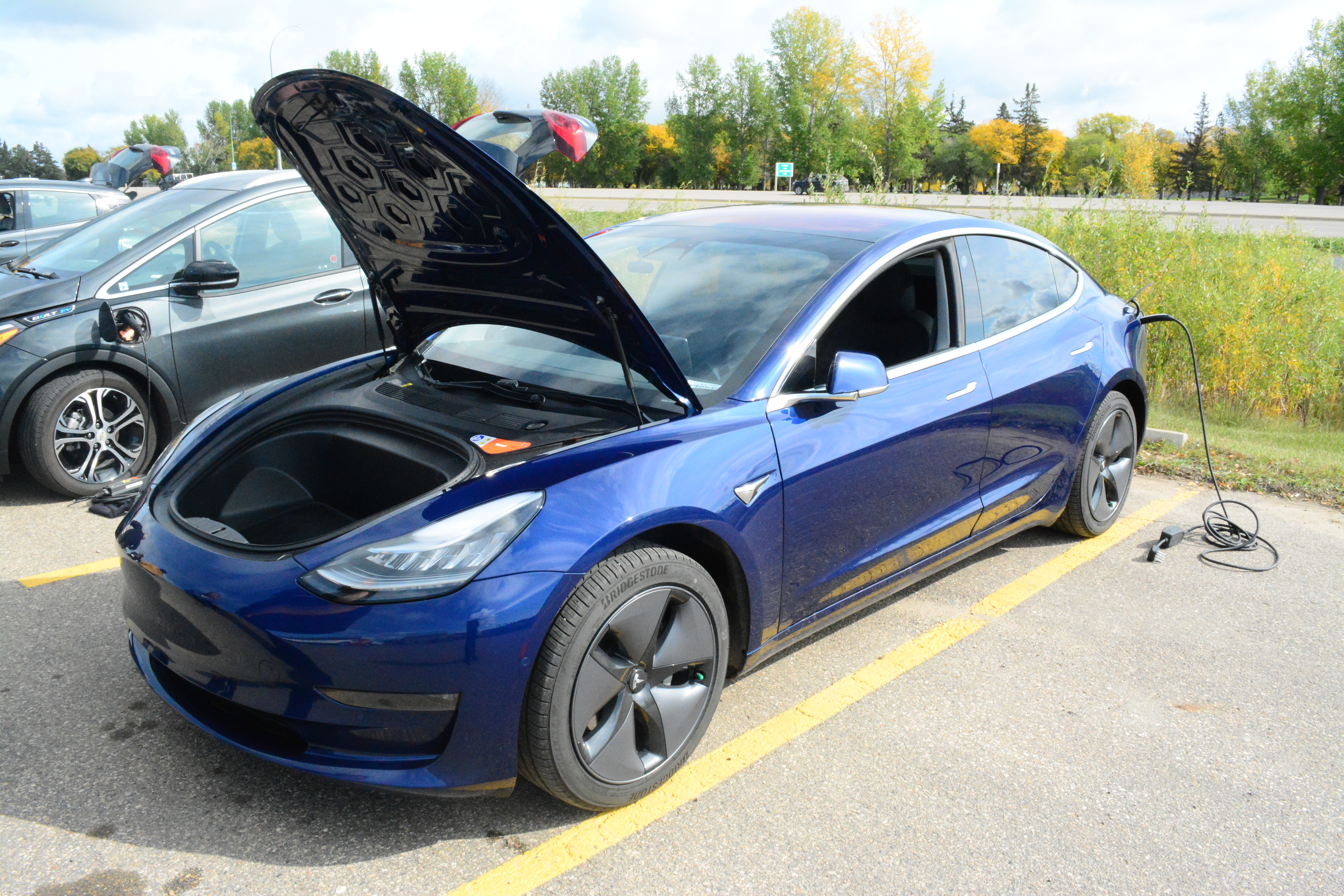 SaskEV, a province wide electric vehicle group, brought out some electric cars to show the public. There were also vehicle owners on hand to answer any questions people had.