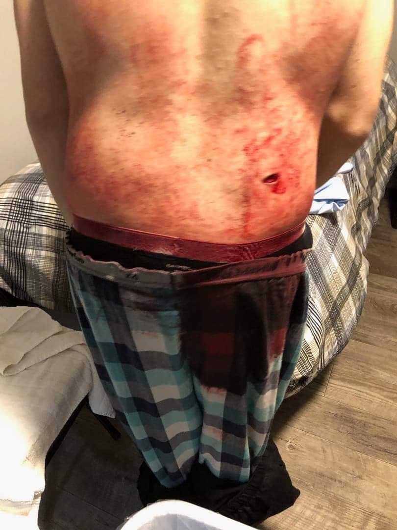 A 20-year-old man is back home recovering after a harrowing ordeal Tuesday night, which led to him being stabbed in the back by a group of strangers.