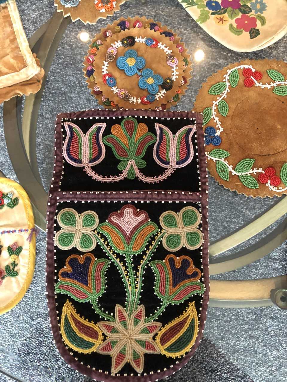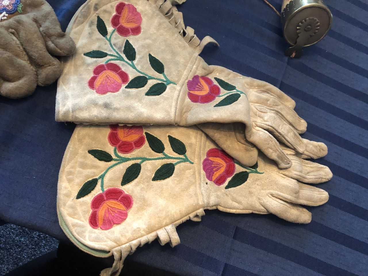 The pieces include a beaded jacket, moccasins, both beaded and embroidered along with a number of others. The jacket is over 100 years old.