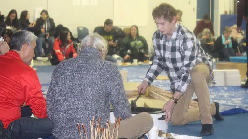 The celebration began with a pipe ceremony at 6 p.m. performed by Victor Tssessaze of Lac Brochet. There were also traditional teachings with a spirit fire, smudge, community feast and Dene hand games. The hand games were led by John Paquettes of Fond du Lac Denesuline First Nation and his three grandsons.
