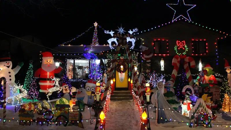 Dennis Adams has an eye-catching festive display on his front yard, something they’ve made a habit of doing. It started as a way for family to spend time together, but he and his wife are both cancer survivors.