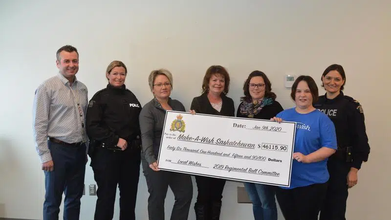 Thursday morning Prince Albert RCMP presented the organization with a check for over $40,000. The money was raised at the Regimental Ball put on at Plaza 88 in December saw around 250 people come out. RCMP Sgt. Lyle Korczak, who helped plan and put on the event said they are happy to support Make A Wish.