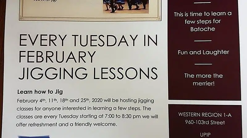 The Western Region 1-A of the Metis Society is hosting Jigging Lessons starting February 4 at the Battlefords Indian Metis Friendship Centre.