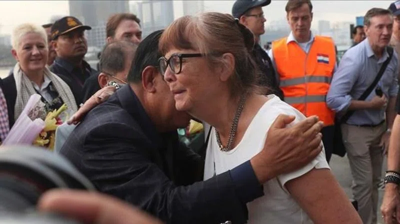 “How wonderful it is to be here. Thank you very much to the prime minister. He has a wonderful heart,” said Anna Marie Melon, from Queensland, Australia. “I’m very excited (to be here),” she said as she waved the rose Hun Sen handed to her.