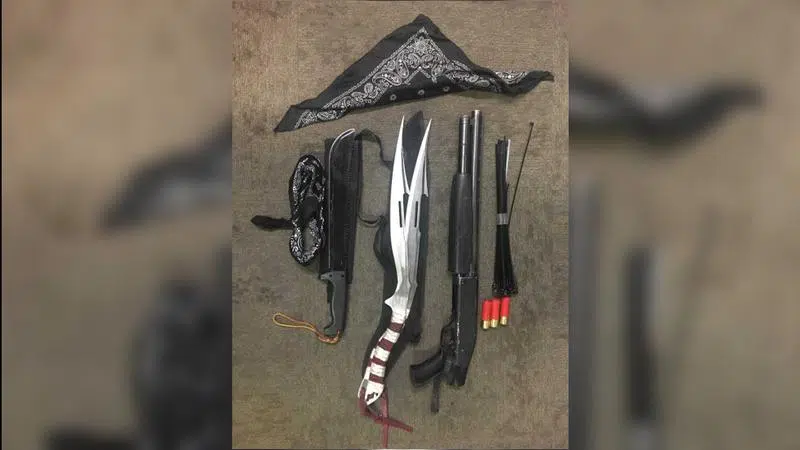 In addition to the weapons mentioned above, police also seized three shotgun shells, and zip ties.