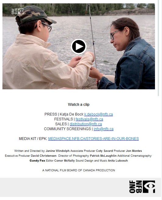 The National Film Board of Canada is happy to announce that director Janine Windolph‘s new film, Stories Are In Our Bones, will be available for free streaming, starting Int’l Women’s Day – Sunday 8 March, 2020.