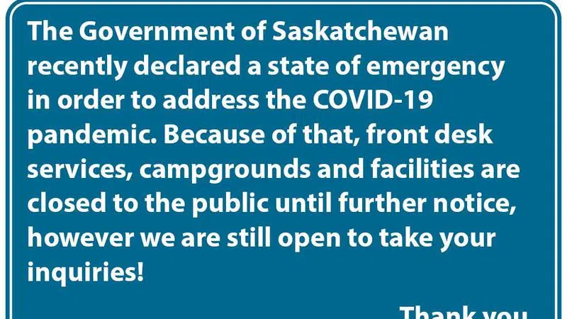 We will continue to monitor the situation and update you as necessary. Stay tuned to www.saskparks.com for the latest updates regarding this emergency and any information about the 2020 camping season.