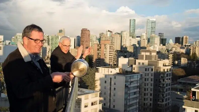 VANCOUVER — At the same time each night, Rev. Gary Paterson and about half a dozen other neighbours have begun gathering at least two metres apart on the rooftop patio of their building in Vancouver’s west end.