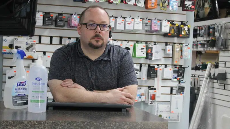 Darryl Arnold, co-owner of Kelly’s Computer Works, located at 1281 100 Street, is upset about the work planned ahead that will take place outside his business.