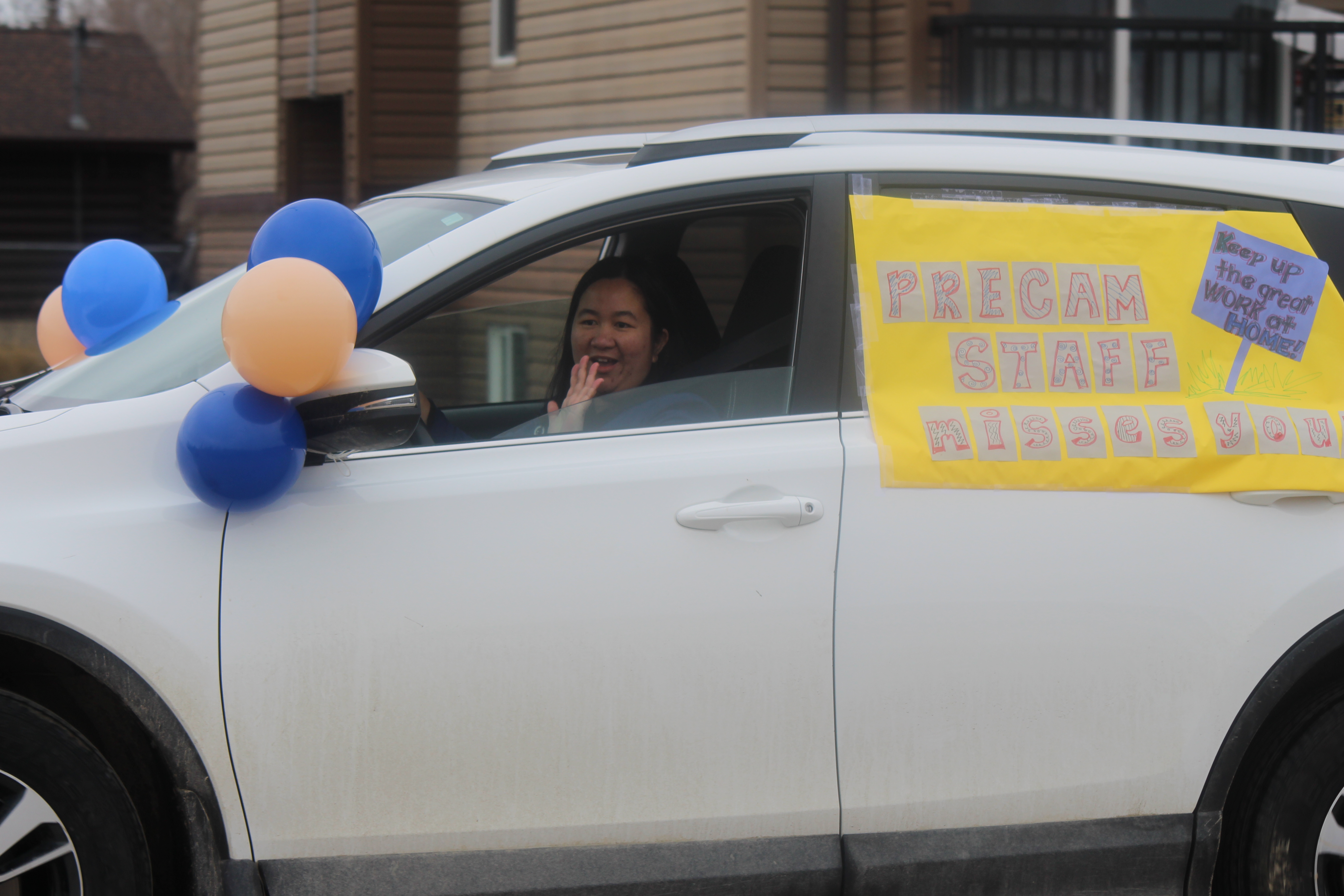 Dozens of staff members driving their personal vehicles were escorted by the La Ronge RCMP and La Ronge Regional Fire Department as they held a parade through local streets. Families dotted the sidewalks and watched as sirens and emergency lights went off as teachers waved and honked their horns.