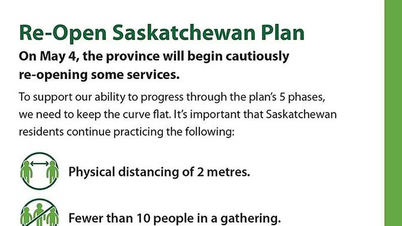 You can read more about Re-Open Saskatchewan at www.saskatchewan.ca/government/health-care-administration-and-provider-resources/treatment-procedures-and-guidelines/emerging-public-health-issues/2019-novel-coronavirus/re-open-saskatchewan-plan.