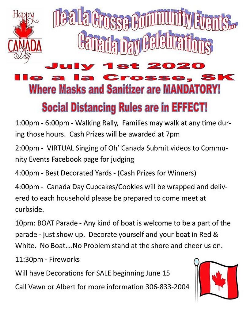 Ile a la Crosse has worked hard to still have Canada Day Celebrations while adhering to social distance protocols.
