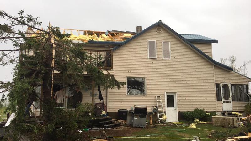 Lexi Thompson and her family live about eight miles north of Brancepeth. The stom ruined the siding on their house, uprooted some big trees, and either knocked over or damaged some grain bins.