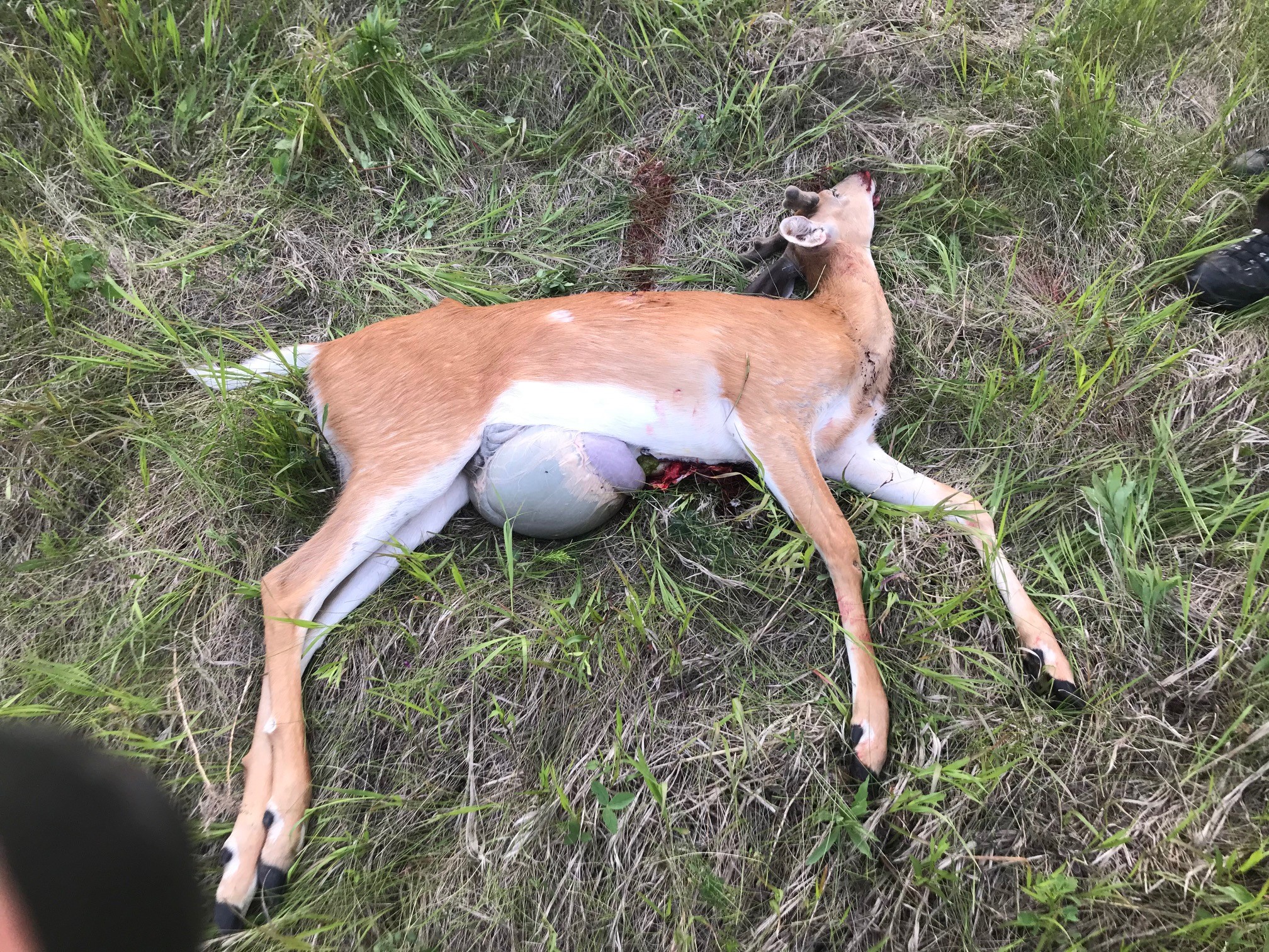 Humboldt conservation officers received a call on the TIP line on Sunday, June 21 about a deer that had been shot about four kilometres east of LeRoy.