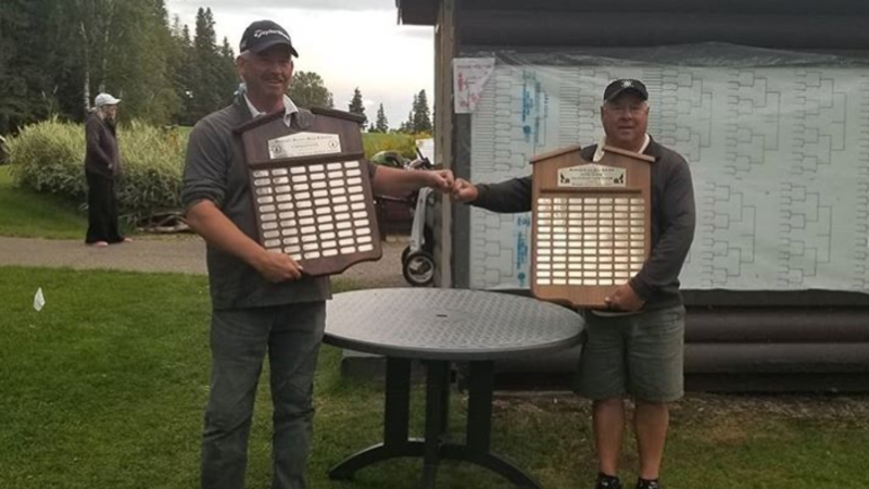 Medicine Hat's Warren Gnam (left) won the Senior Men's Lobstick while Biggar's Keith Silvernagle won the Super Senior title. Submitted photo/Tyler Baker