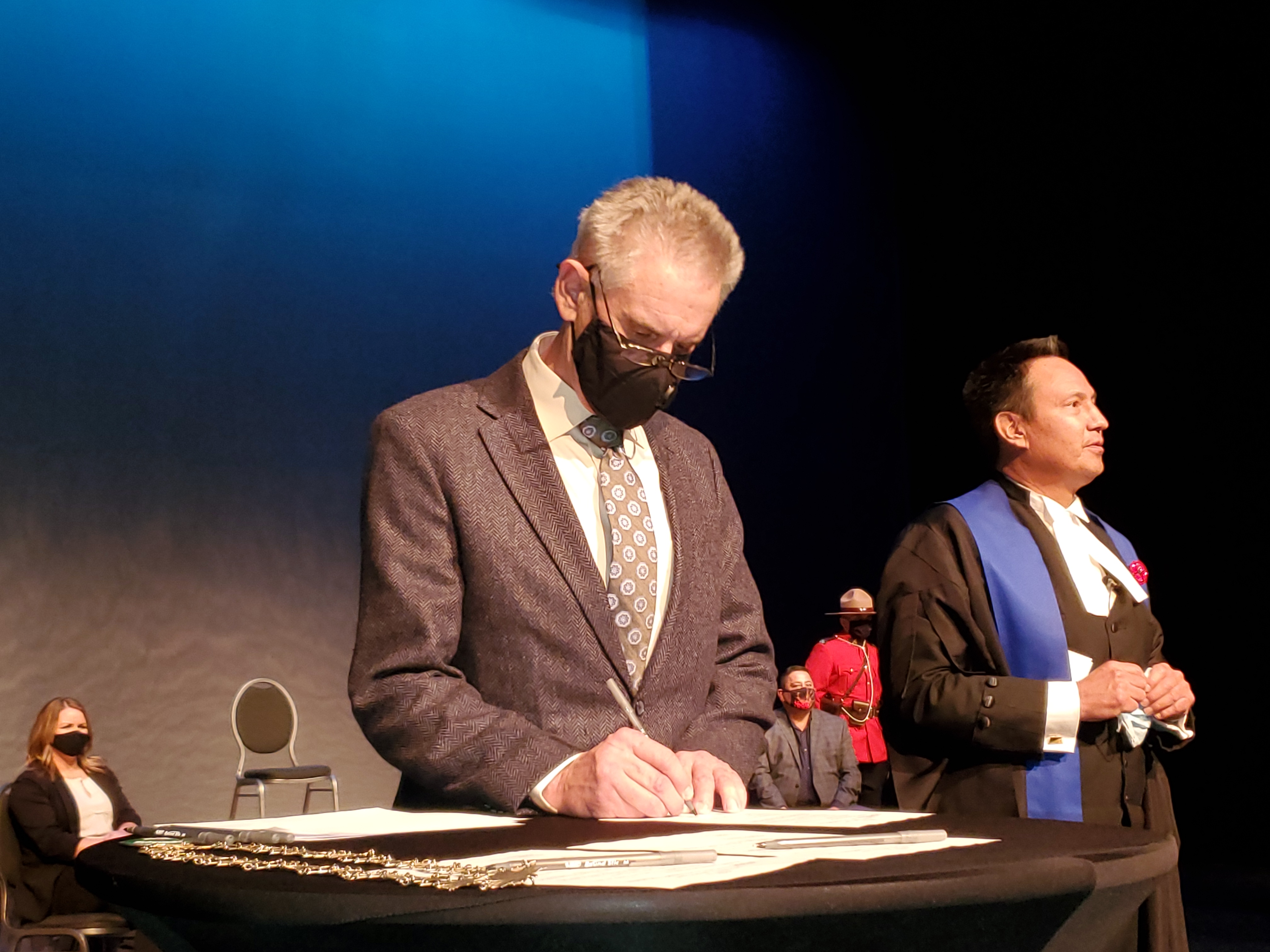 The ceremony was less traditional than years past, with members masked up as they took their oaths and put them to paper at the Dekker Centre, in order to guarantee social distancing. Despite scaling down the event due to pandemic related concerns, Judge Murray Pelletier, of North Battleford Provincial Court, said it remains an important ceremony for everyone who bears witness to the swearing in of their locally elected officials.
