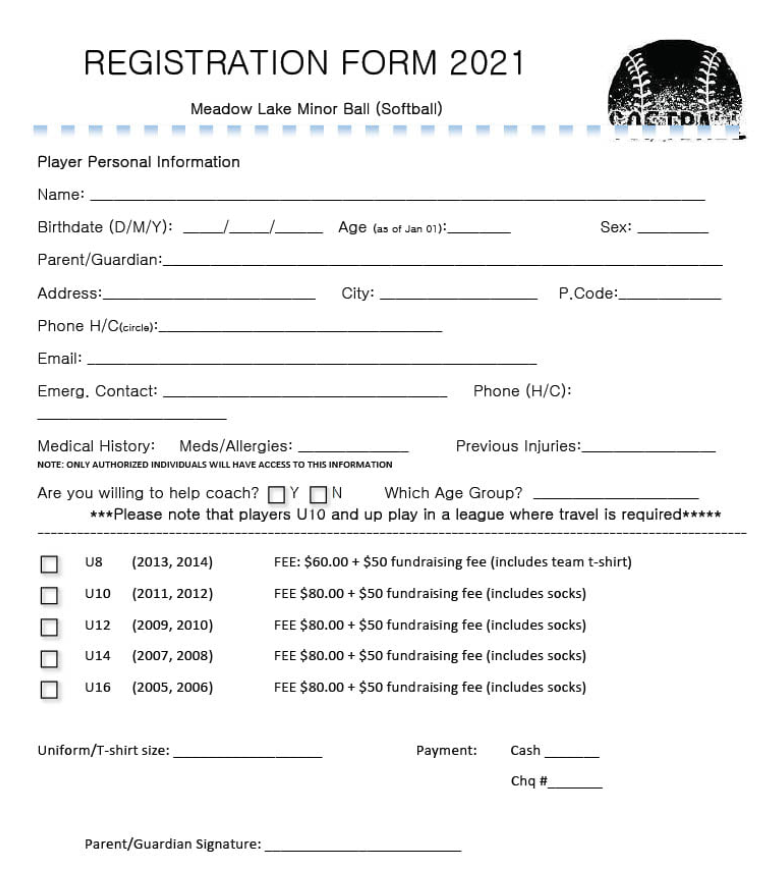 Please fill out the appropriate registration form and send to recmanager@meadowlake.ca.