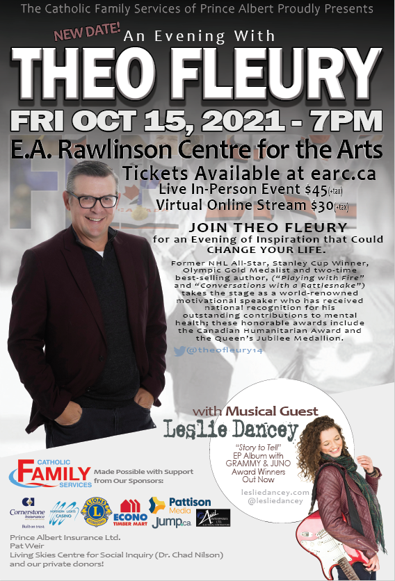Catholic Family Services of Prince Albert Presents An Evening with Theo Fleury on Friday, October 15.