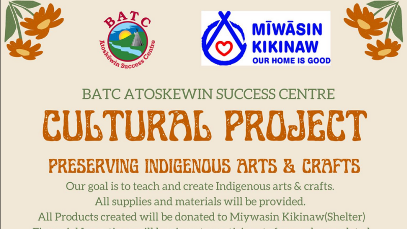 The Battlefords Agency Tribal Chiefs Atoskewin Success Centre has a series of events coming up: Cultural Projects Preserving Indigenous Arts and Crafts.