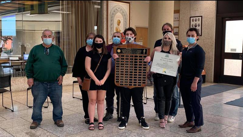 Reid Lehner poses with family who came to support him after receiving the 2021 Terry Fox Award. (Dawson Thompson/paNOW Staff)