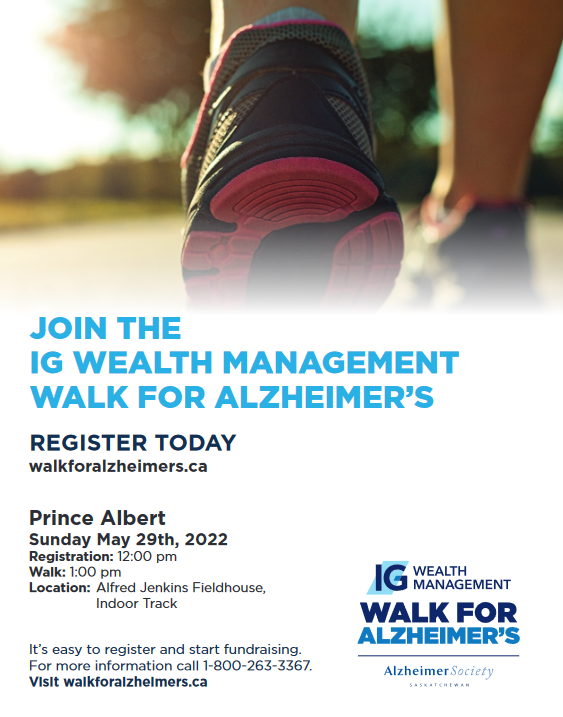 The IG Wealth Management Walk for Alzheimers will be May 29 in Prince Albert.