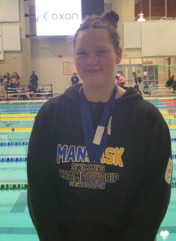 times in 100 m and 400 m Freestyle, 100 Back and 200 IM. Also won the Sask Female Para swimmer
