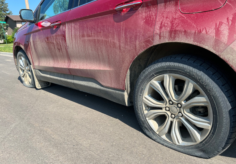 In some cases multiple tires were slashed on the same vehicle. (Nigel Maxwell/ paNOW Staff)