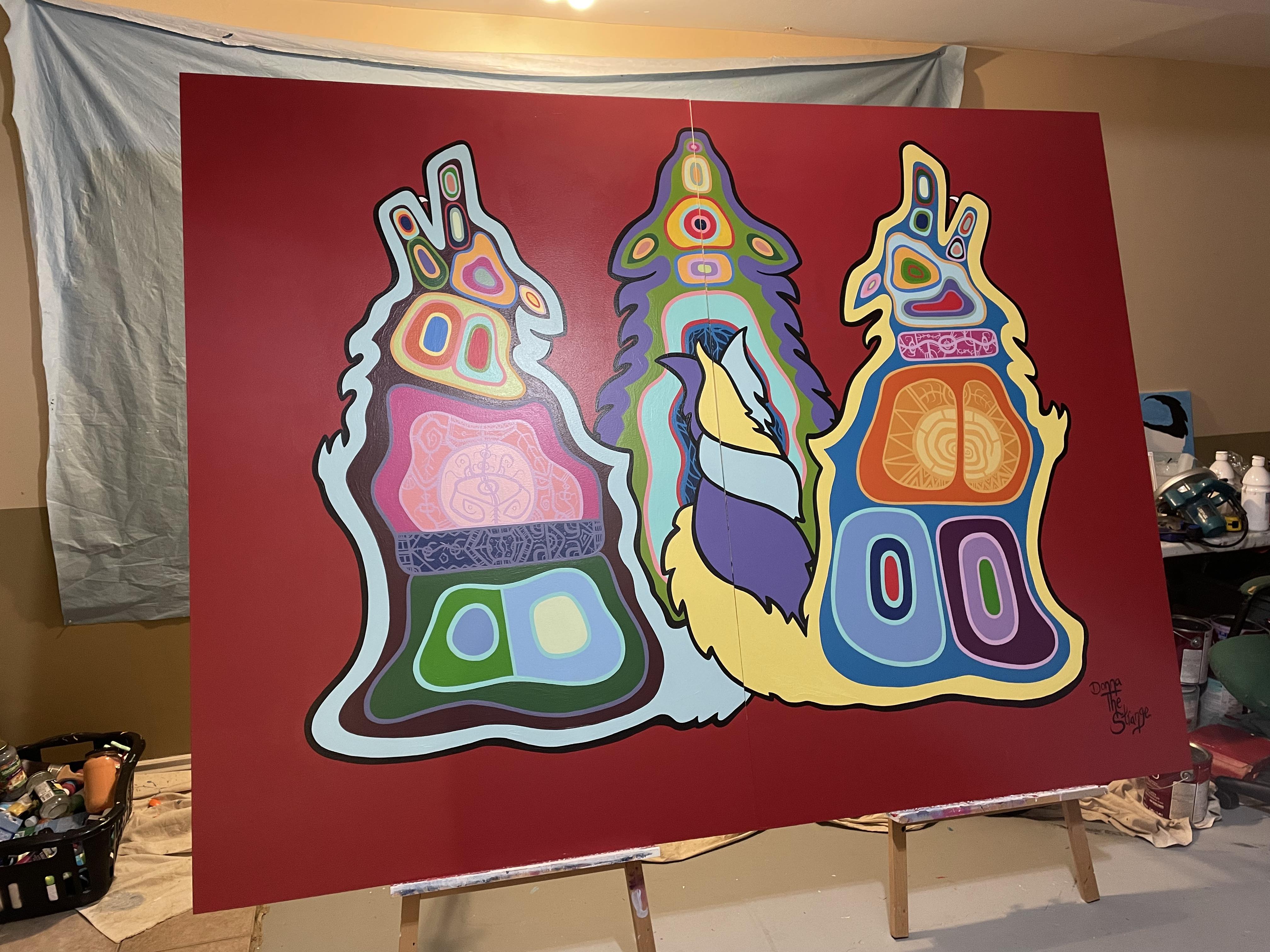 Donna Langhorne, known for her Anishinaabe Woodland style paintings, was chosen as the artist to complete the $40,000 project earlier this year. Funding for the project was made possible through the federal government’s Celebration and Commemoration Program’s Reopening Fund and the murals showcase the three communities coming together during and after the COVID-19 pandemic.
