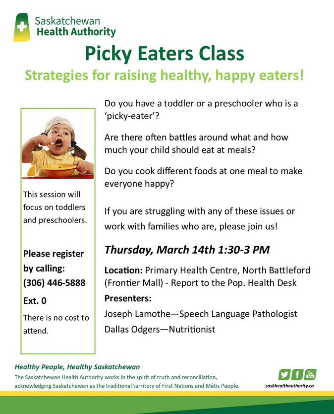 The SHA has developed a picky eaters class that will be in North Battleford on Thursday, March 14.