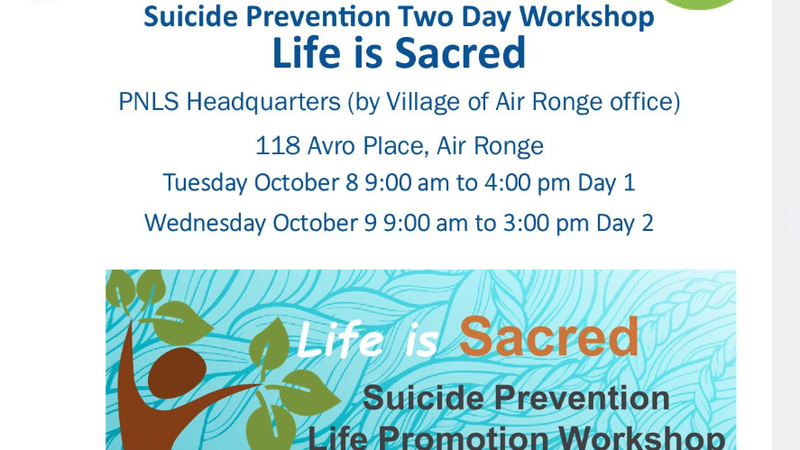 Roots of Hope is presenting Suicide Prevention two day workshop: Life is Sacred in the village of Air Ronge October 8 and 9.