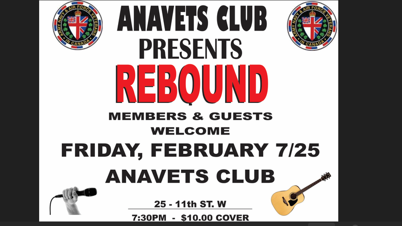 By Army Navy and Air Force Veterans Rebound at the ANAVETS Friday Feb 3, 2025 | 1:47 PM Share on Facebook Share on Bluesky Share on X Copy Link Rebound is playing this Friday at ANAVETS. See the poster for details.