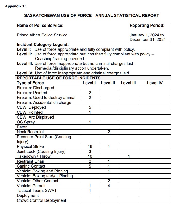 Prince Albert Police release use of force numbers as part of transparency plan