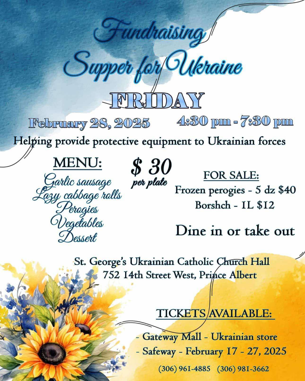 Have a great night out and support a wonderful cause by supporting the Fundraising Supper for Ukraine, Friday starting at 4.30.