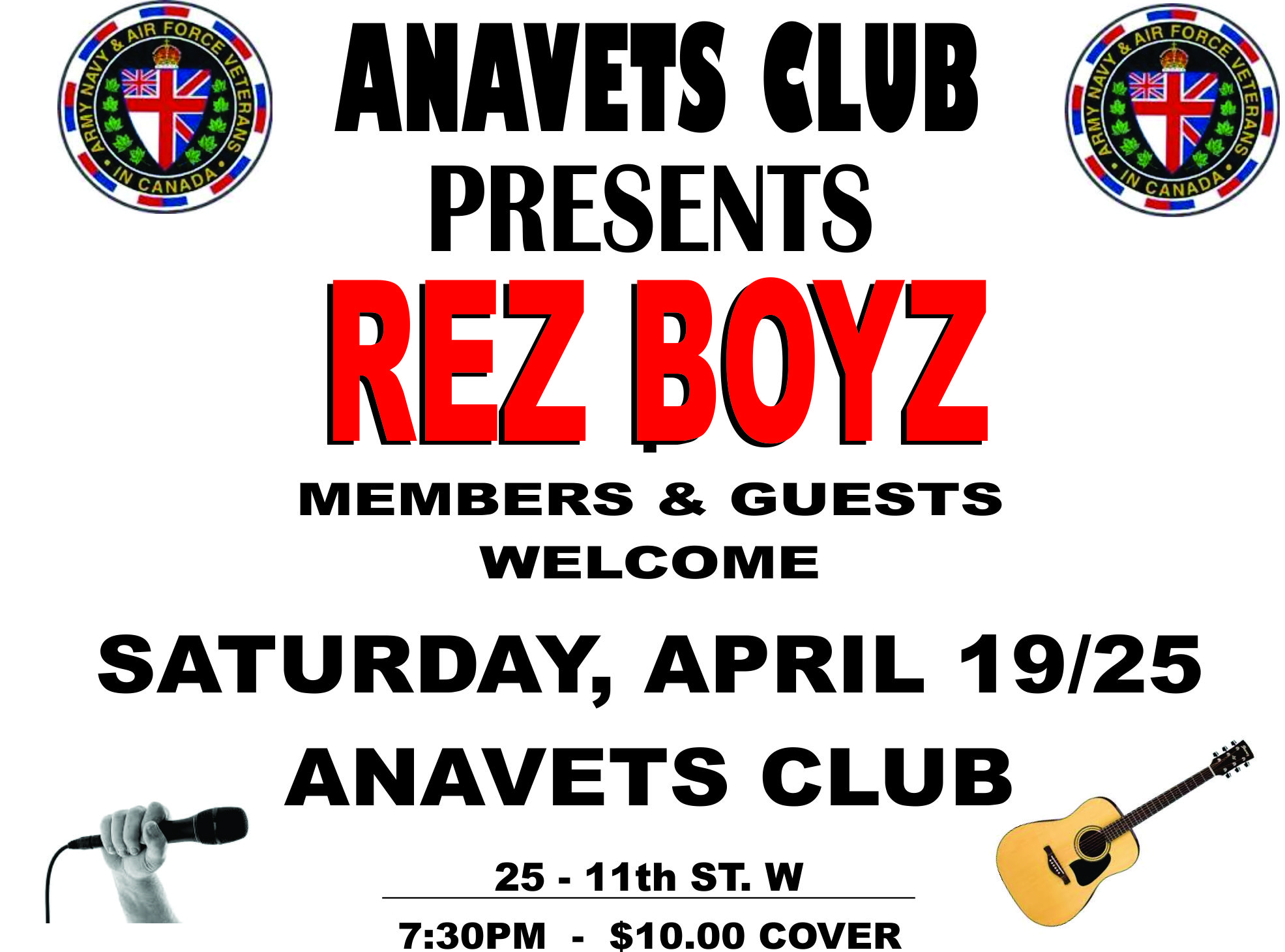 The Rez Boys will be playing at the ANAVETS Friday. See the posters below for other events.