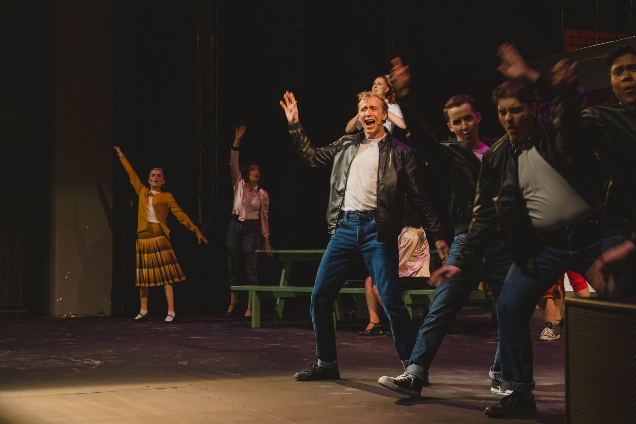 Brenner Holash at centre stage plays ‘Danny Zuko’ with swagger. (Jon Lao/City of Prince Albert)