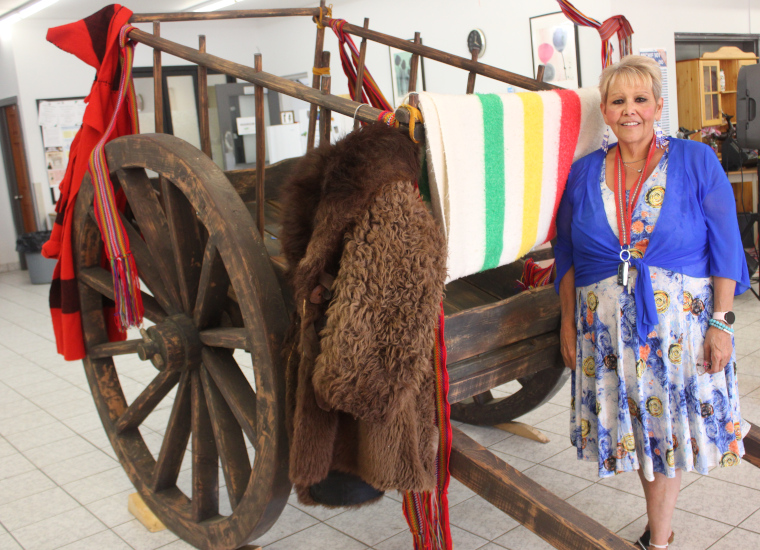 The Red River cart was handmade and donated by a man from the Canwood area. Region Director Sherry McLennan called it a special moment.