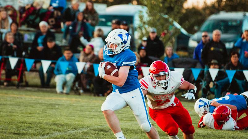 “In 2016, we hosted the Can-Am Bowl. It’s a Grade 12 six-man all-star game between Canada and the US. And at that time, the Meeteetse coach at the time invited us down for a game with our high school team. So, in 2018, we did end up going down and playing Meeteetse with our football team.”