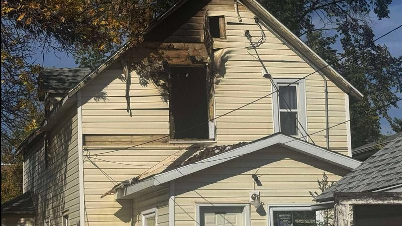 Damage to the upstairs of this home is visible following a fire this morning. (Nigel Maxwell/paNOW)