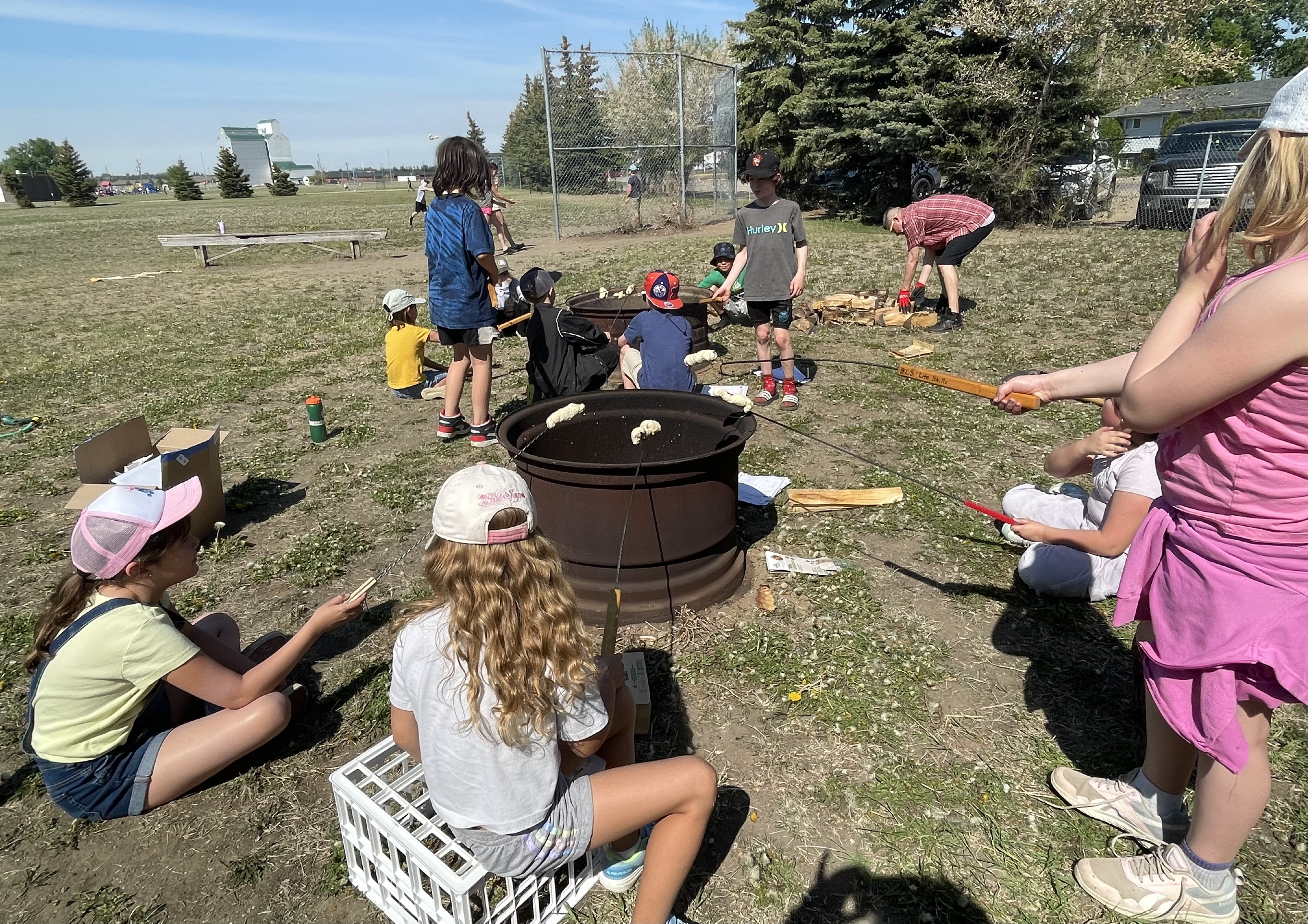 In the glow of a spring day at Battleford Central School, Grade 3 and 4 students gathered around small campfires, laughing as they struck flint, cooked bannock on sticks and tasted fresh berry jam.