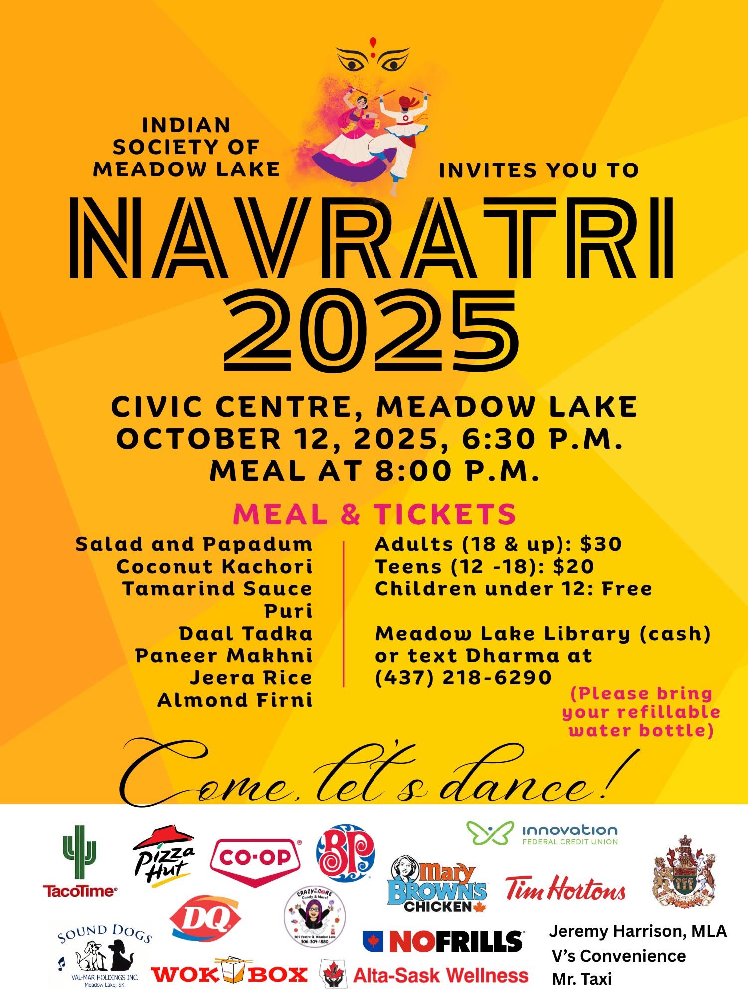 The Civic Centre will come alive with drumbeats, swirling fabric and the clack of wooden sticks this Sunday as the Indian Society of Meadow Lake hosts its Navratri celebration.